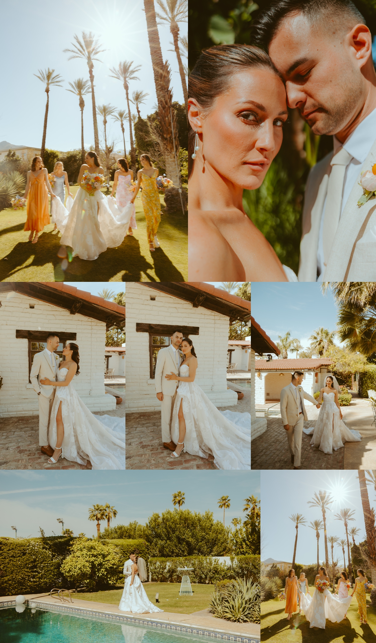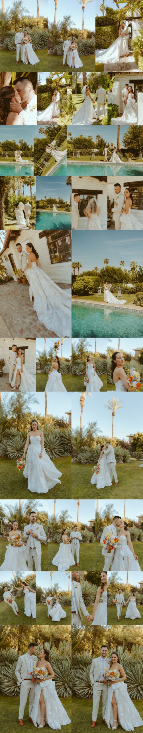 They got married at the Cree Estate which is a gorgeous historic venue in Palm Springs. They have two huge pools, a tennis court, a house you can stay in for the weekend, plenty of spaces to have your ceremony, diving boards, hot tubs, big beautiful palm trees, all the most gorgeous things you can imagine for a venue.